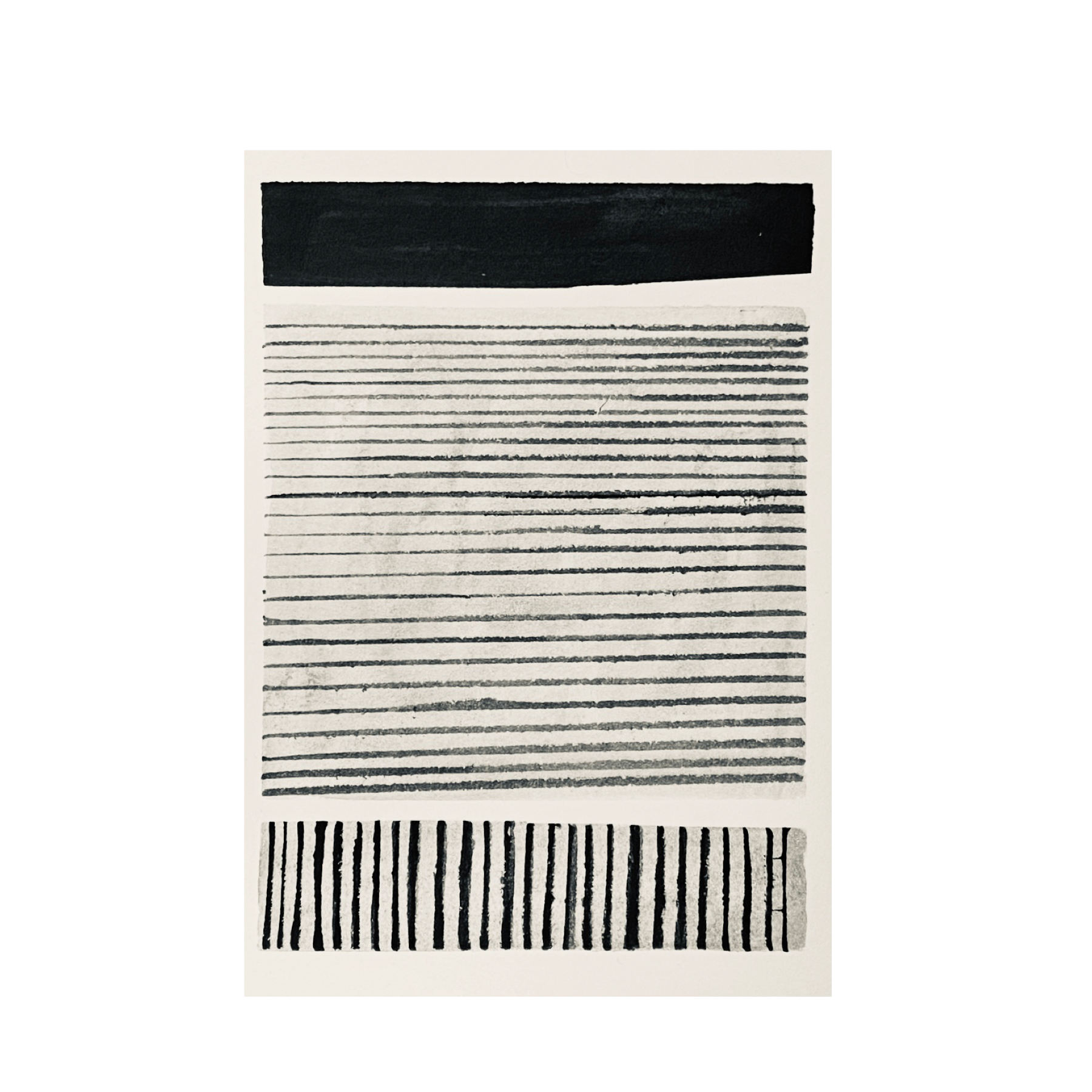 An abstract watercolor print with a layered palette of black, white and gray tones.